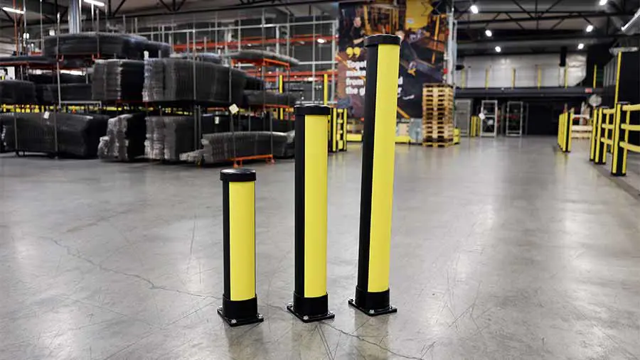 The X-Protect Essential Bollards, by contrast, are designed for light-duty impact zones where flexibility and fast installation are key. They provide dependable ground-level protection against accidental contact from forklifts, AMRs or pallet trucks while maintaining an open layout. Available in four sizes from 620 to 1170 mm, the Essential Bollards allow easy adaptation to different layouts and traffic conditions.