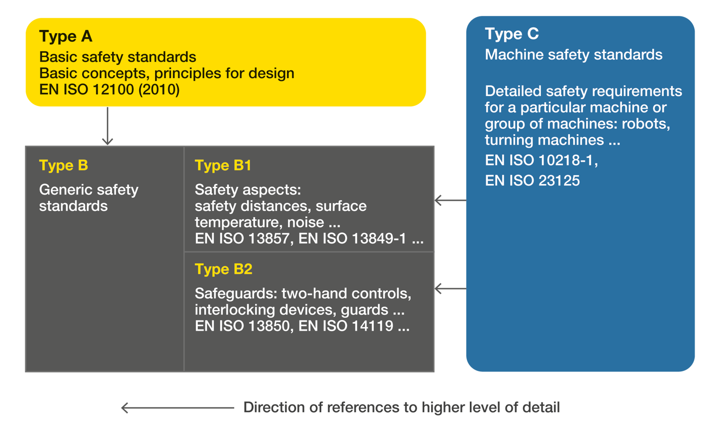 Letztlich sind alle Sicherheitsnormen für irgendjemanden in einem Projekt wichtig. Aber im Wesentlichen enthalten nur 11 Normen Lösungen für 80 % der relevanten Sicherheitsaspekte. Dennoch ist es hilfreich, die Struktur des Systems der Maschinensicherheitsnormen zu verstehen.