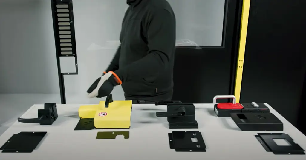 Montage einer Verriegelung am neuen Stahlblech- und Kunststoffsystem